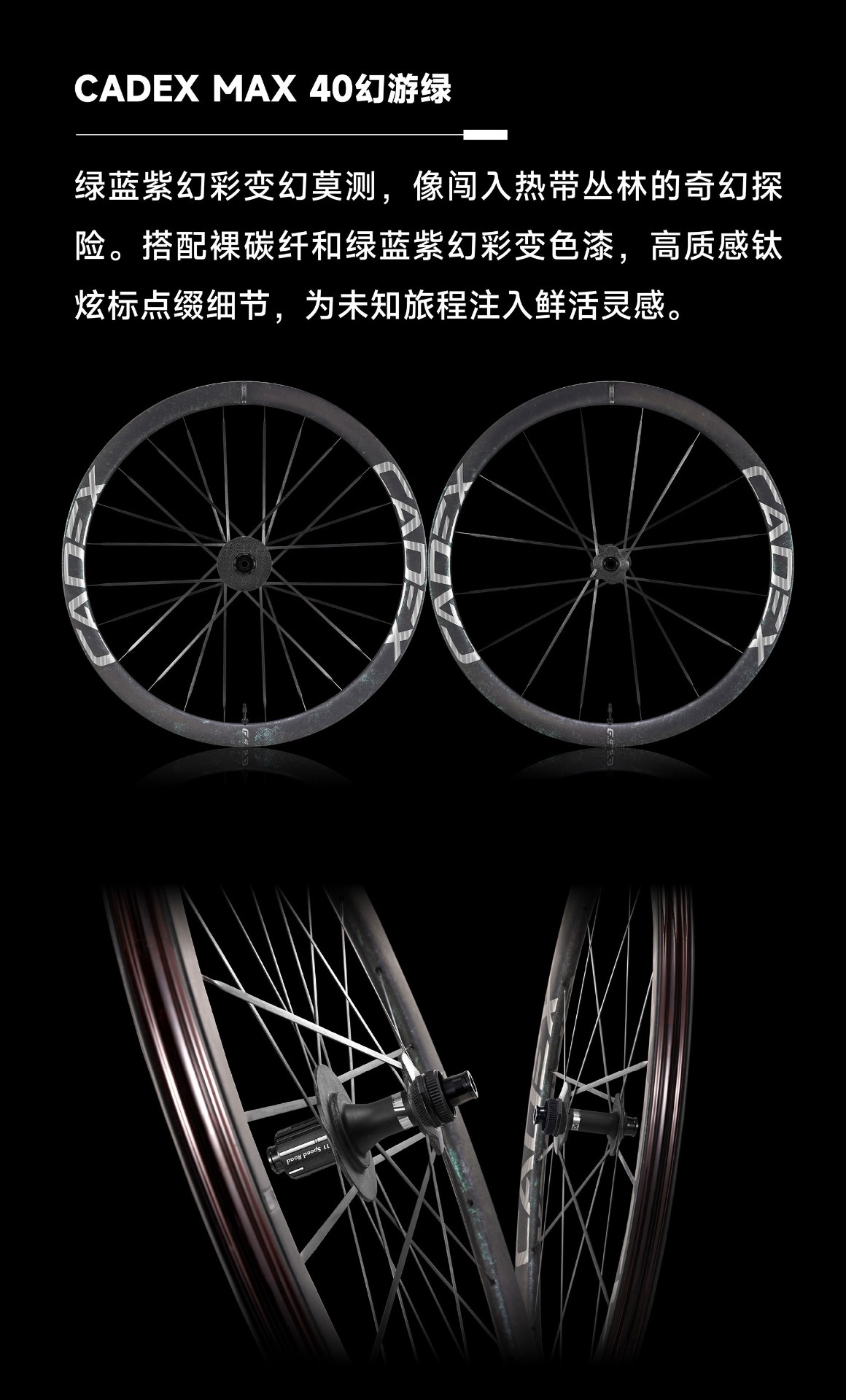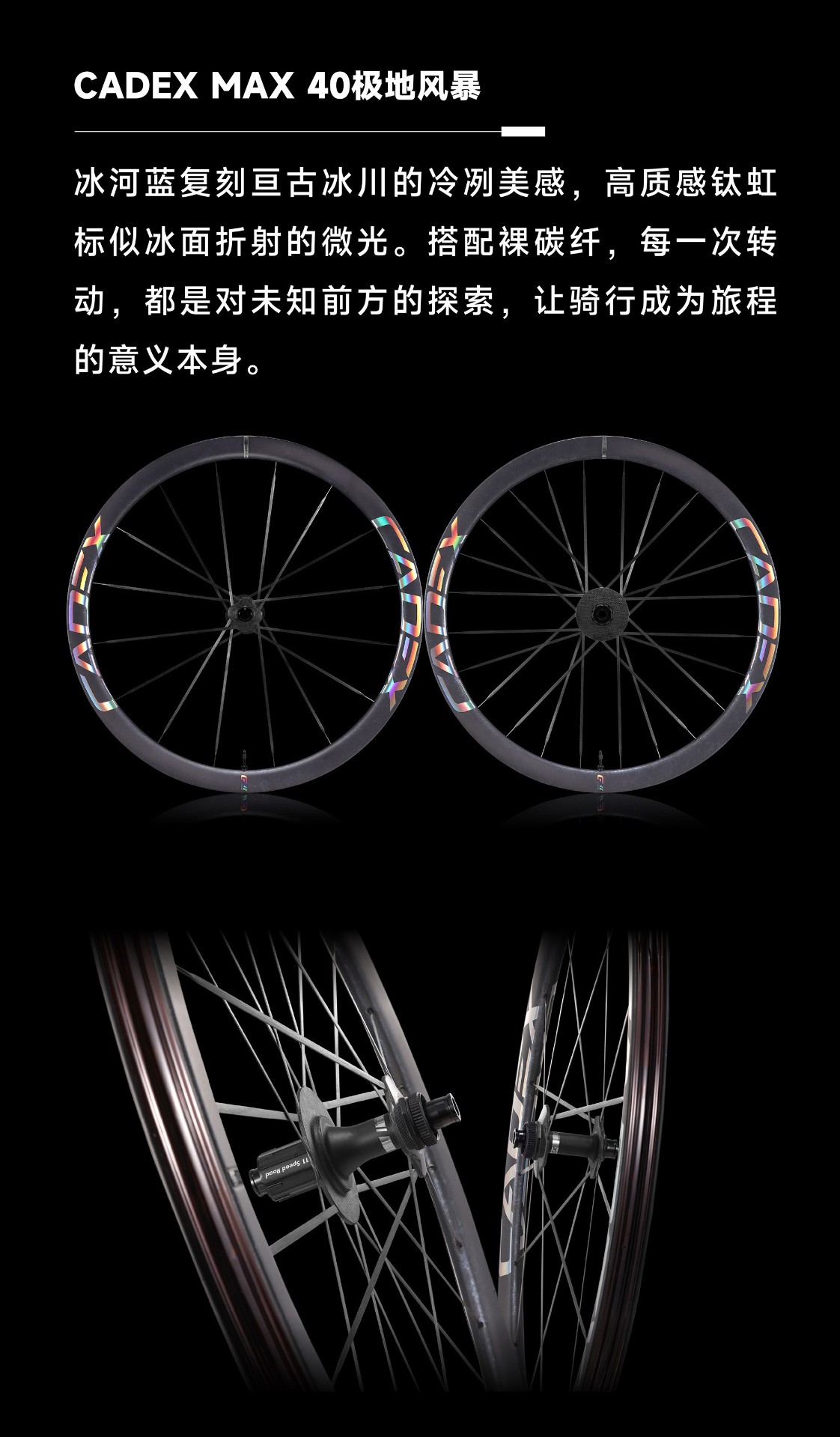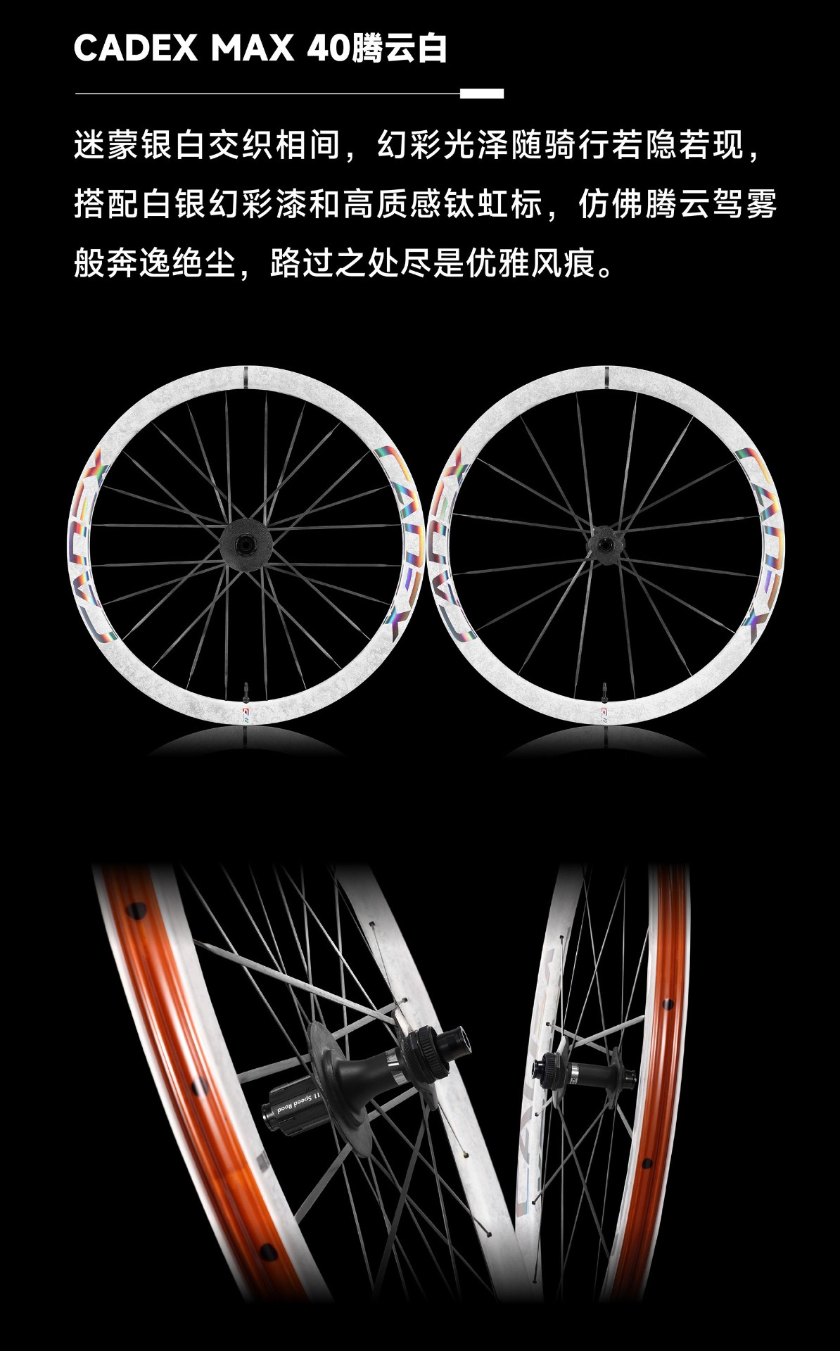 超轻量的高张力CADEX空力碳纤辐条提供同级最佳的侧向刚性与空力效果,即使面对侧风依然提供出色的操控稳定性。